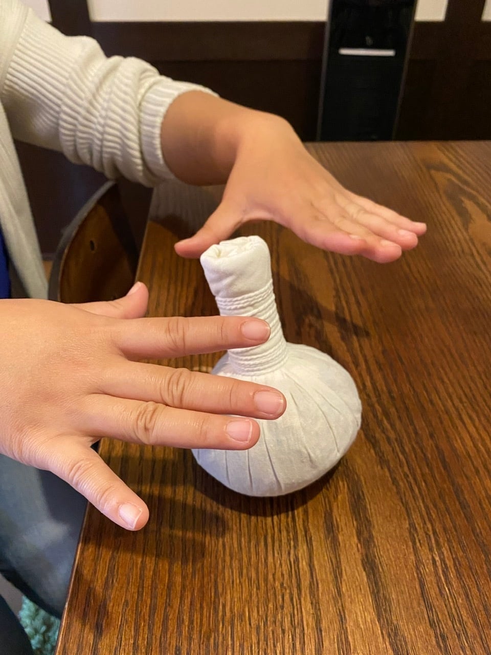 難しい場合は、ハーバルボールをラップに包み電子レンジで約1分温めて下さい。