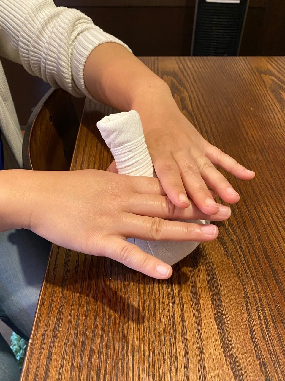 中心部まで湿ったら、少し絞ります。